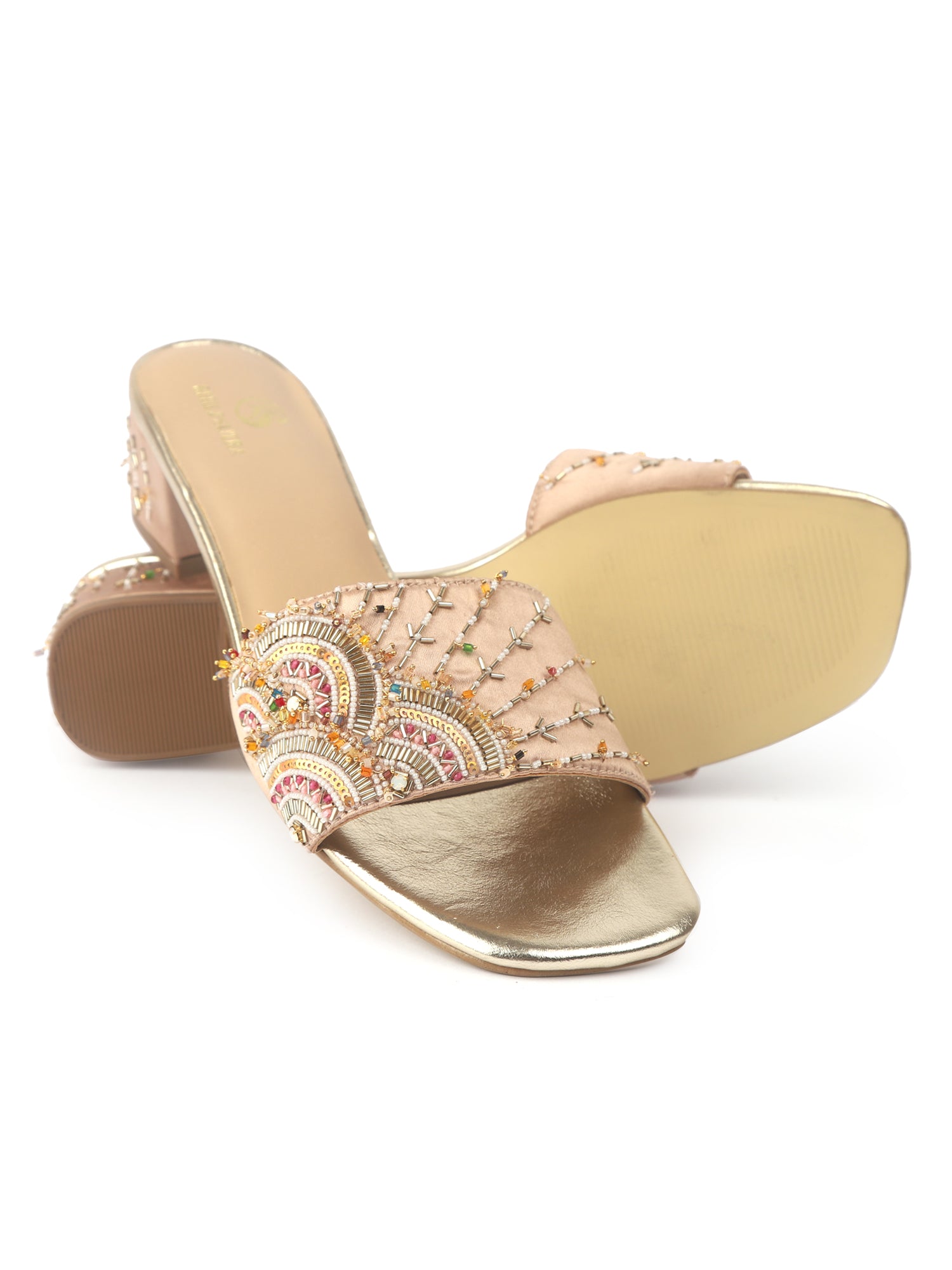 Step into artful elegance with our Mandala Muse Heel, a masterpiece inspired by traditional mandala art. This statement pair features intricate hand embroidery in a stunning blend of gold with multicolor accents, radiating symmetry, spirituality, and style.